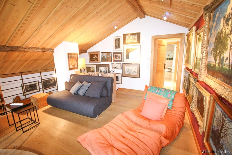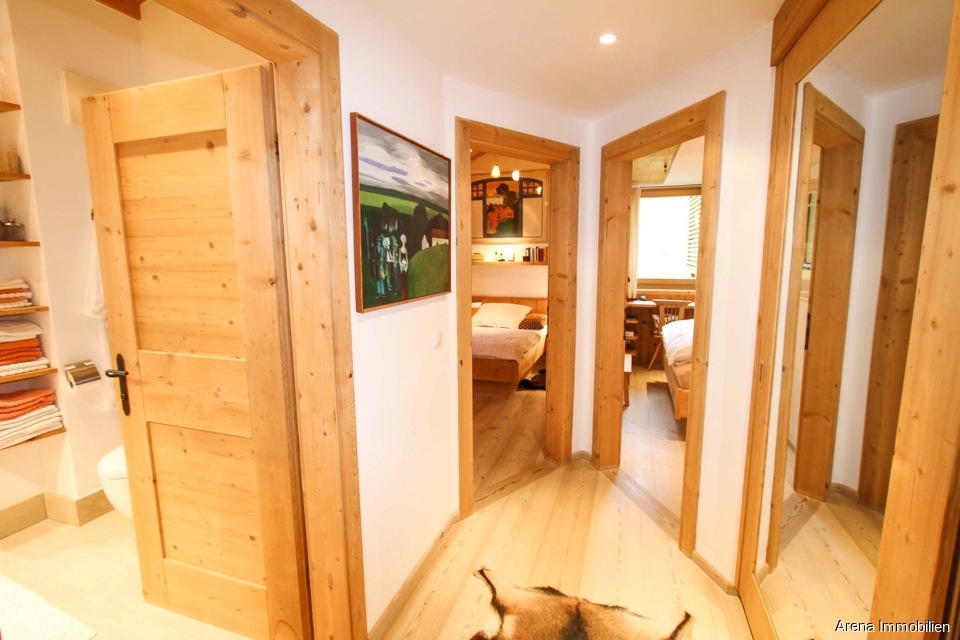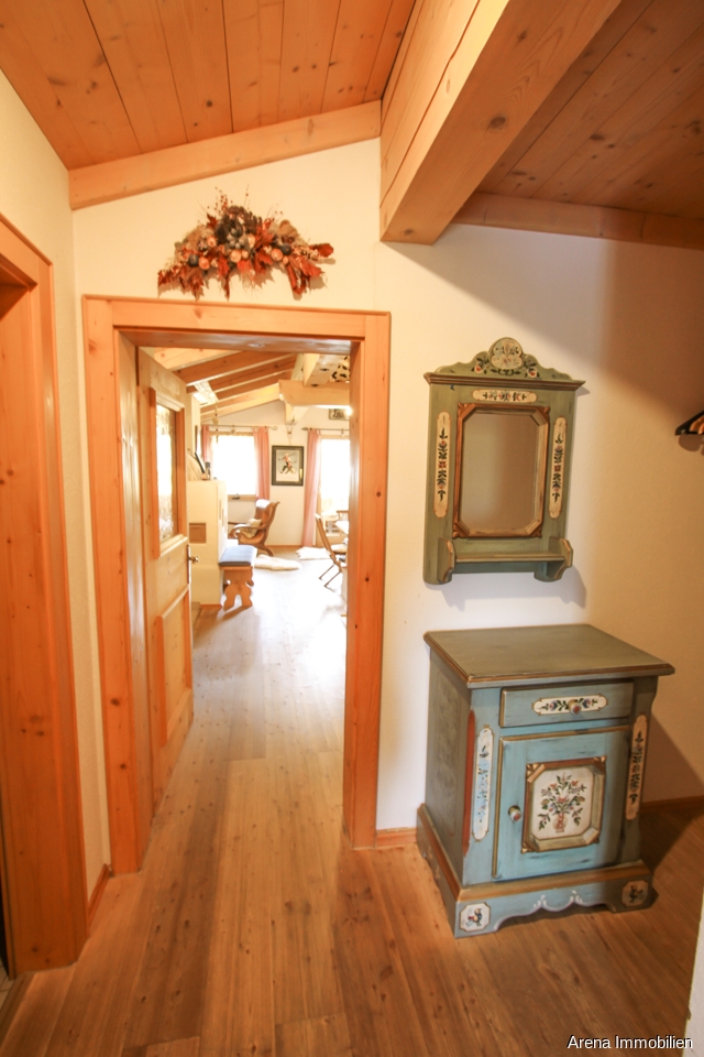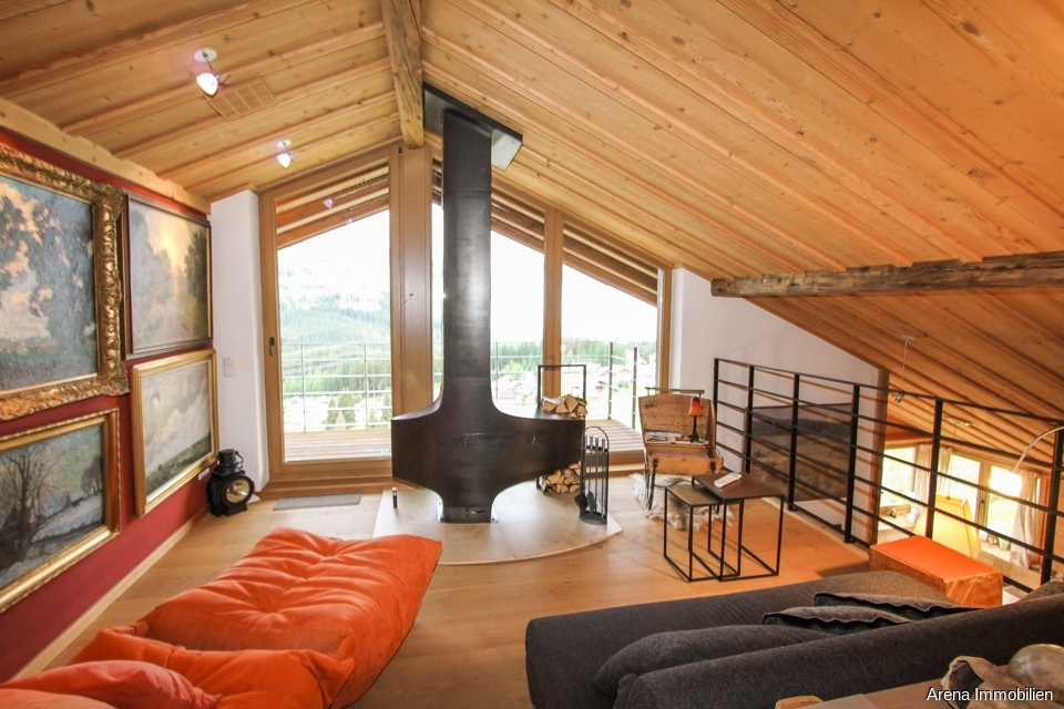 Schon beim Betreten spüren Sie den besonderen Charme dieser Wohnung: Die großzügige, auf zwei Ebenen verteilte Penthousewohnung empfängt Sie mit warmem Holz, alpiner Gemütlichkeit und einem offenen Wohnkonzept, das sofort Wohlbefinden ausstrahlt.