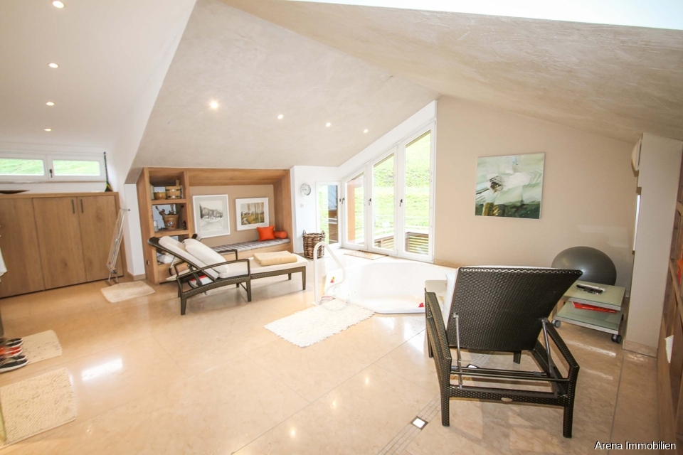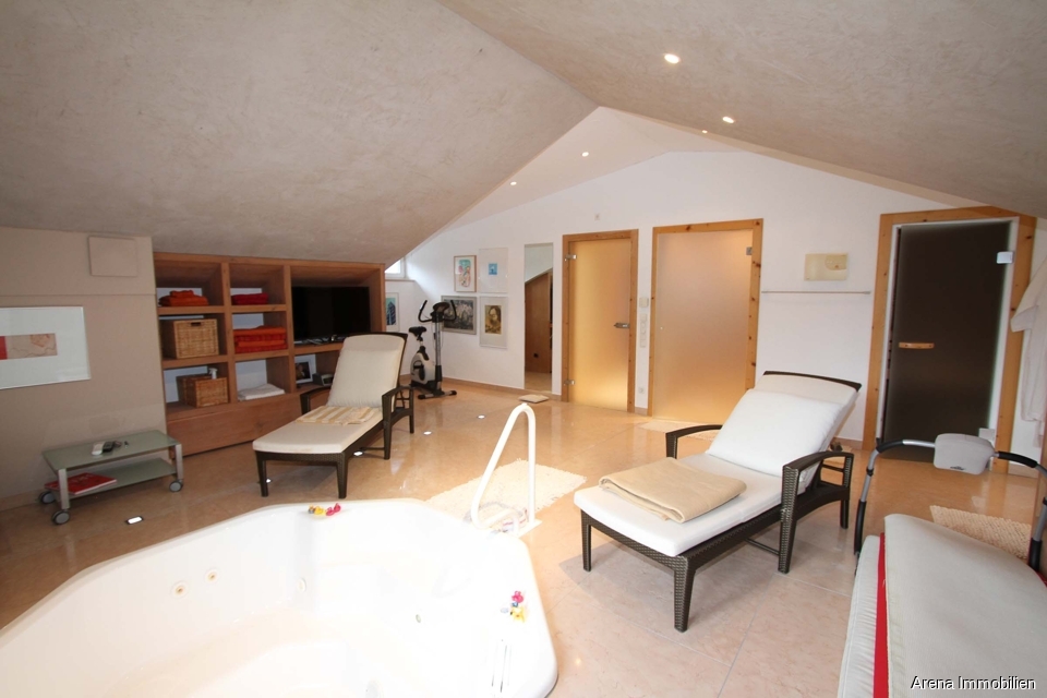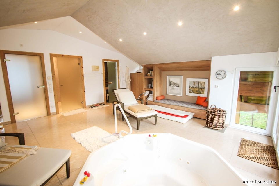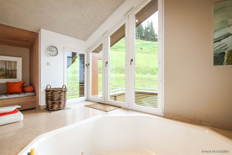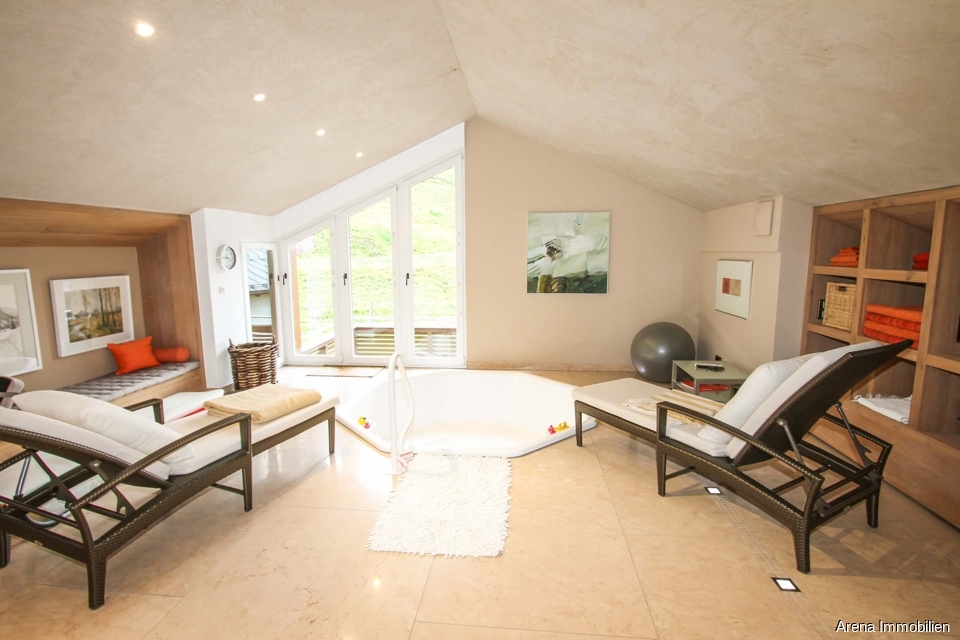 Das Highlight dieser Immobilie ist der private Wellnessbereich: Ein großer ebenerdiger Jacuzzi mit freiem Blick auf die Berge, eine Sauna und eine Erlebnisdusche verwandeln Ihr Zuhause in eine exklusive Wohlfühloase – perfekt, um nach einem Tag auf der Piste oder einer Wanderung in der Natur zu entspannen.